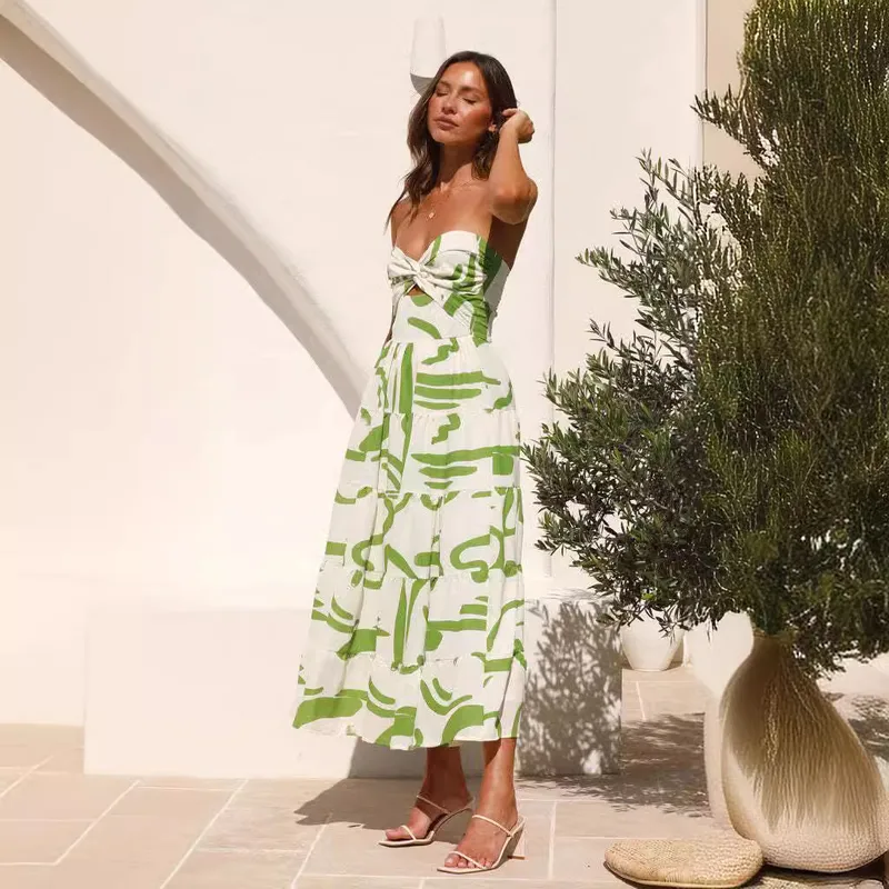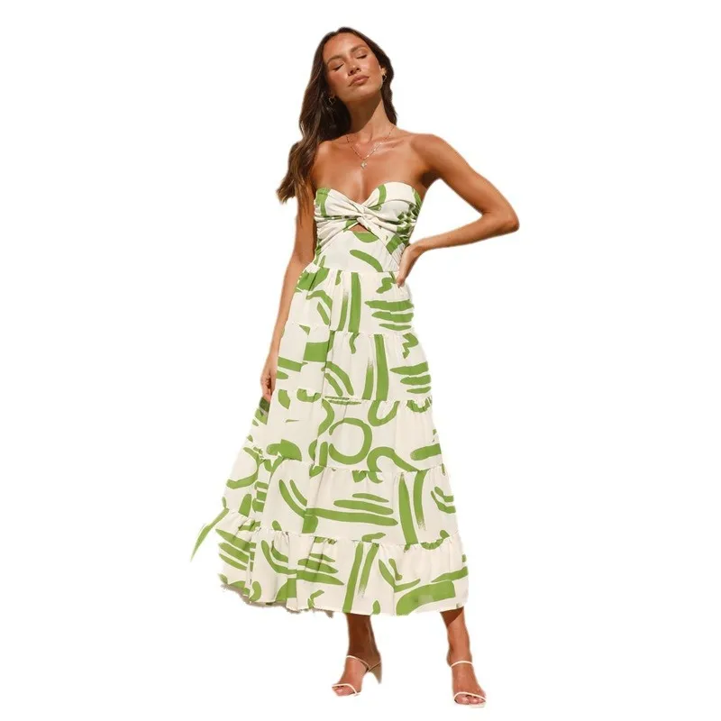 Wholesale Women's Swing Dress Sexy Strapless Printing Sleeveless Printing Maxi Long Dress Holiday Beach