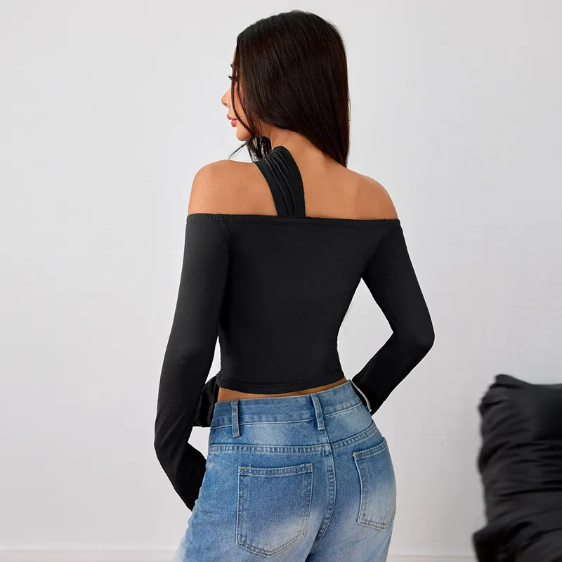 Wholesale Women's T-shirt Long Sleeve Blouses Asymmetrical Casual Solid Color