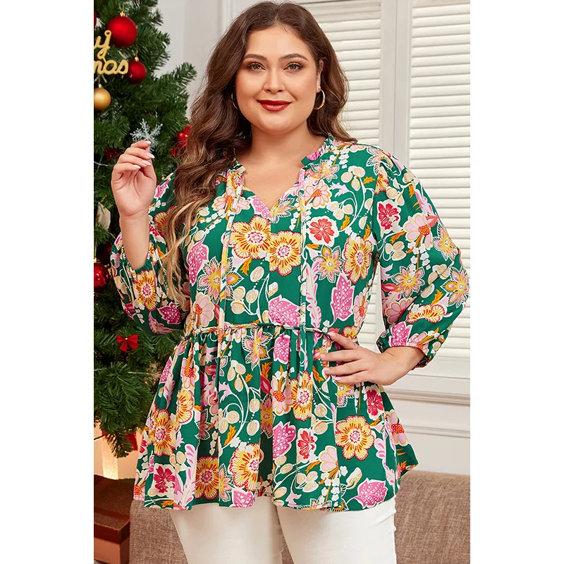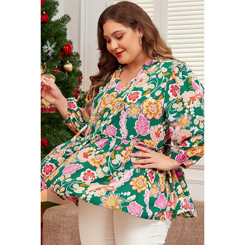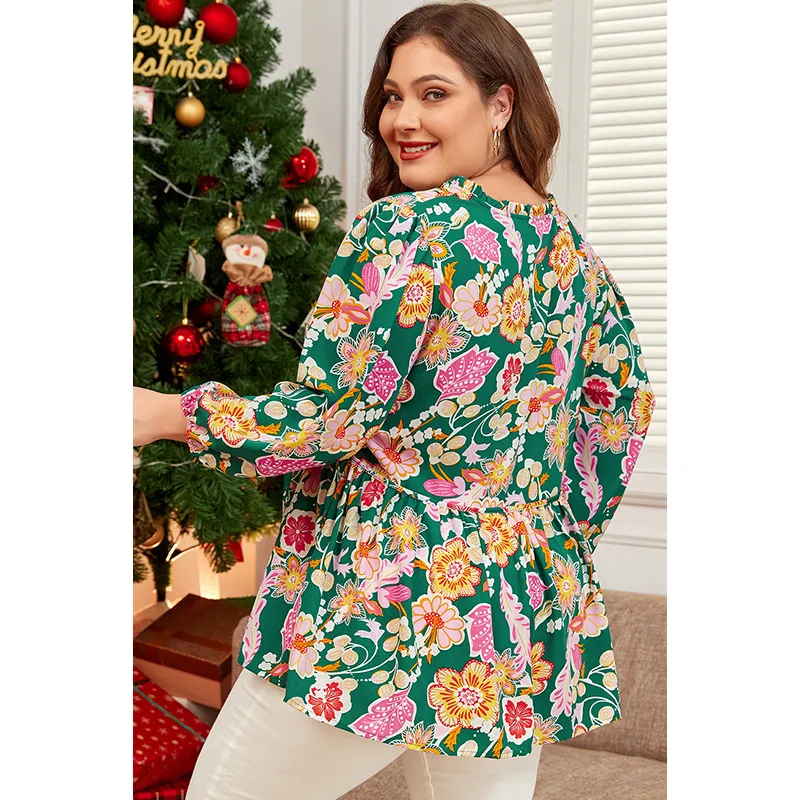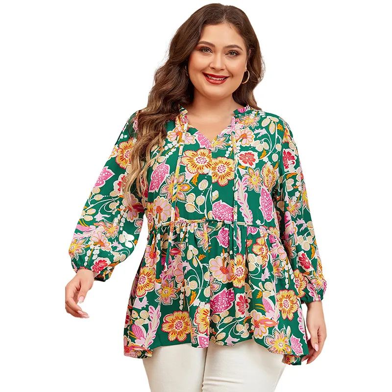 Wholesale Women's T-shirt Long Sleeve Blouses Casual Vacation Color Block Flower