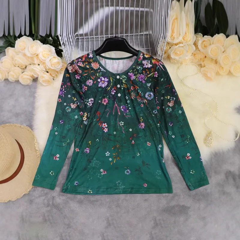 Wholesale Women's T-shirt Long Sleeve T-Shirts Vacation Simple Style Flower