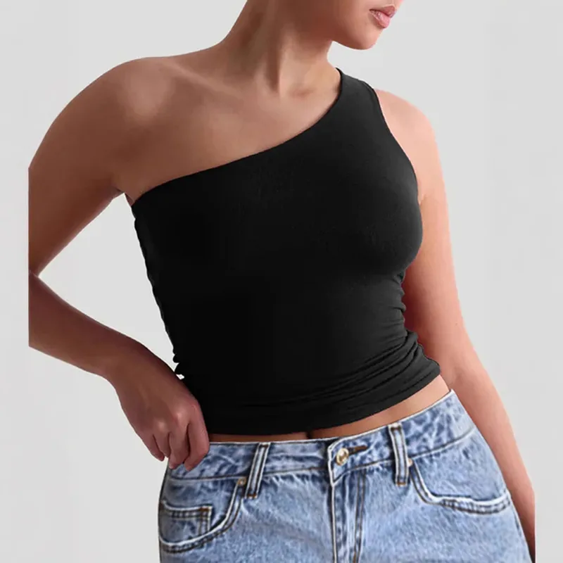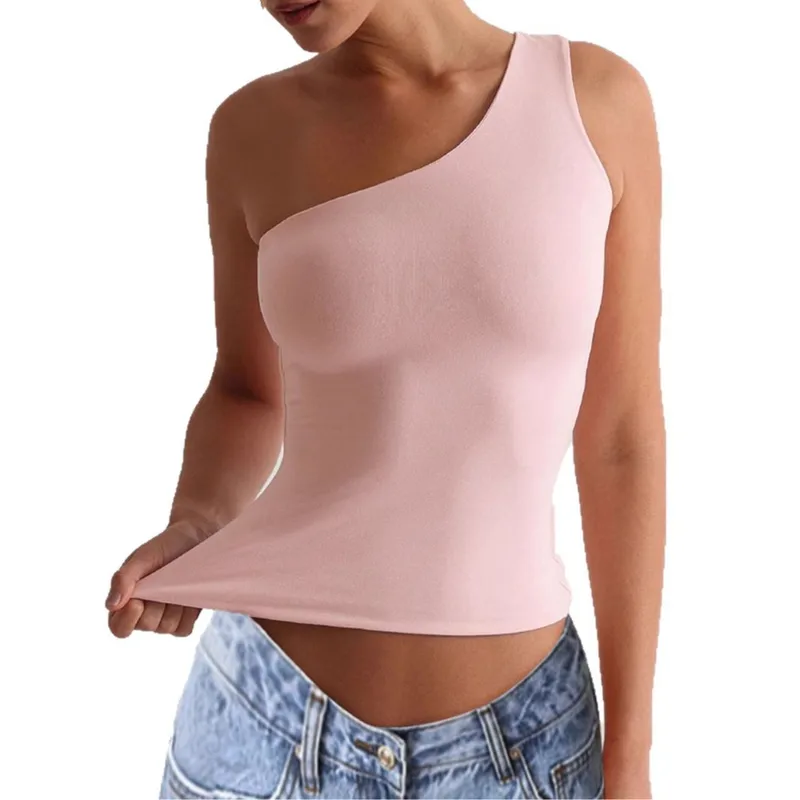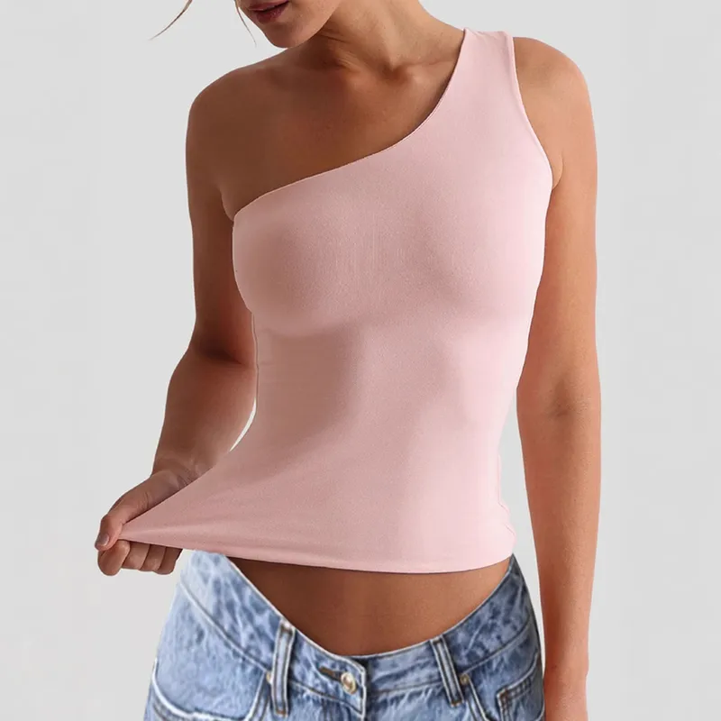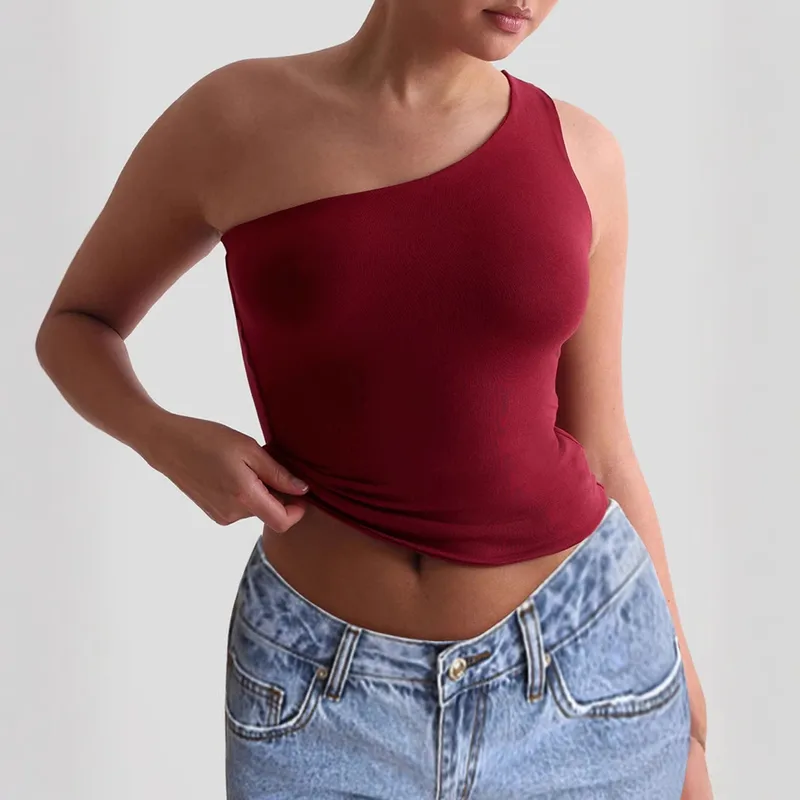 Wholesale Women's T-shirt One Shoulder T-Shirts Casual Solid Color