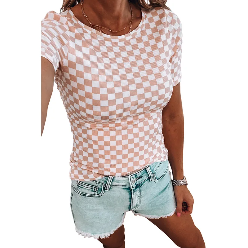 Wholesale Women's T-shirt Short Sleeve T-Shirts Casual Simple Style Streetwear Plaid
