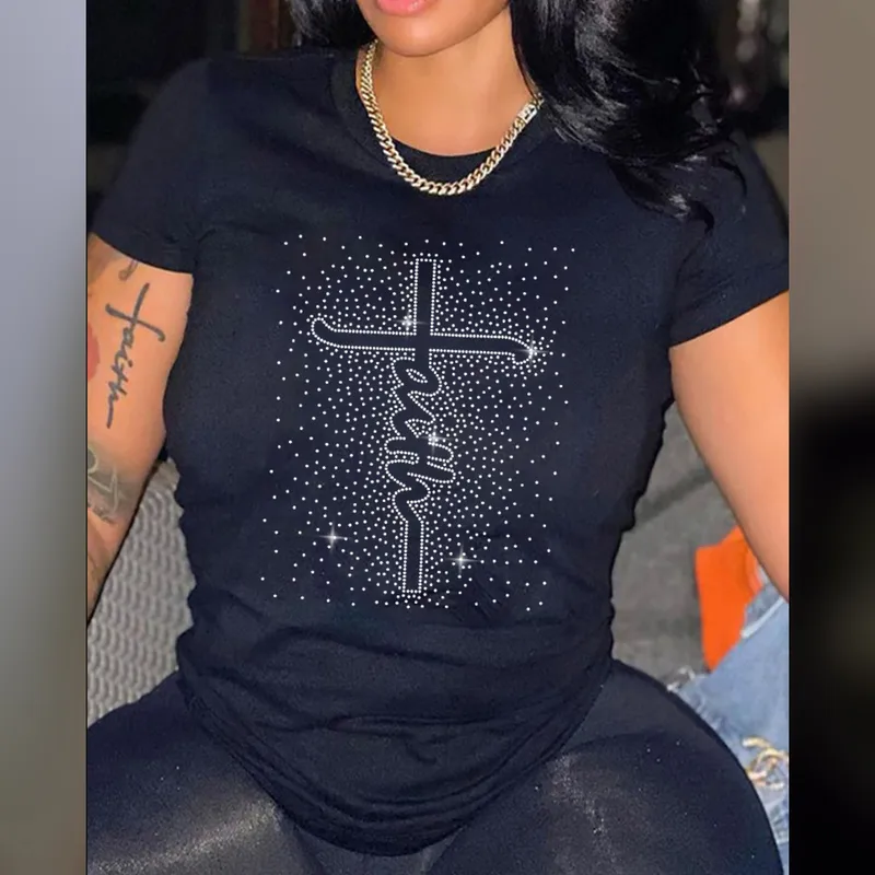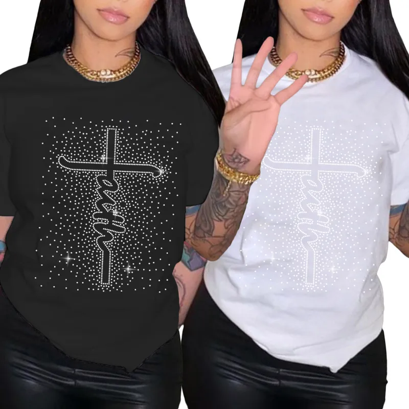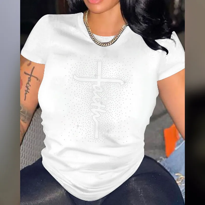 Wholesale Women's T-shirt Short Sleeve T-Shirts Diamond Streetwear Letter