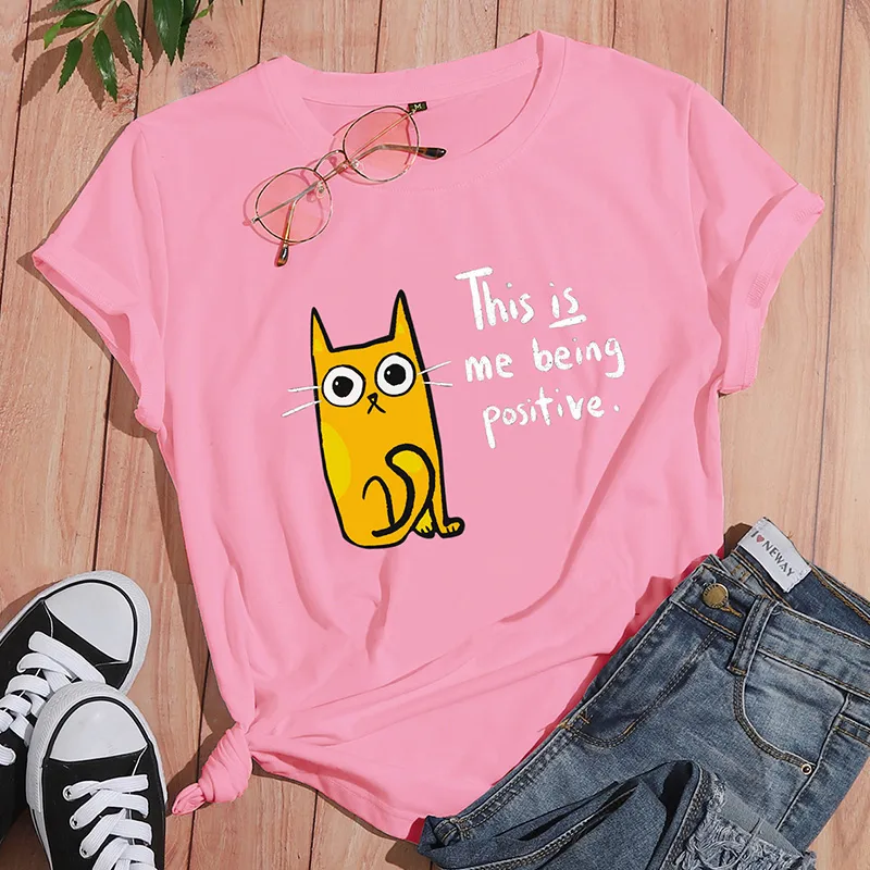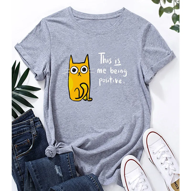 Wholesale women's t-shirt short sleeve t-shirts printing casual letter cat