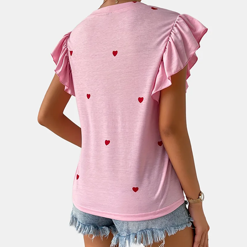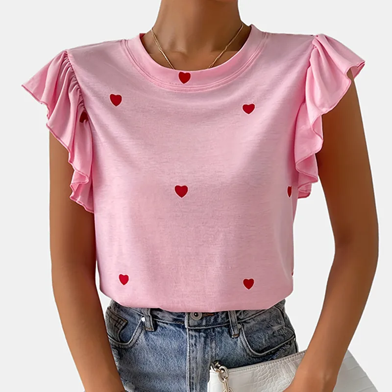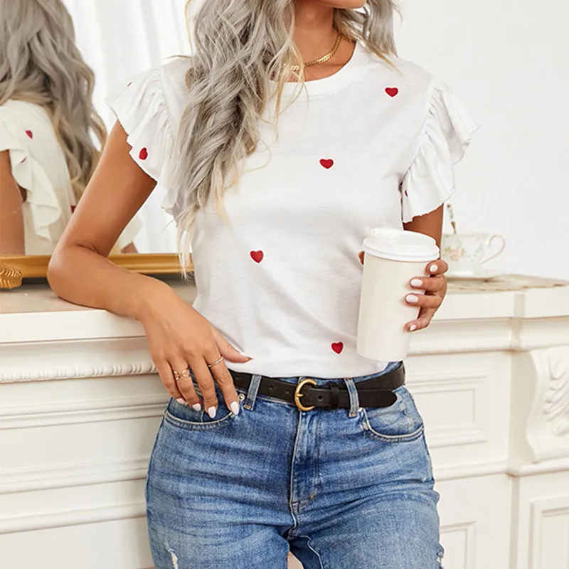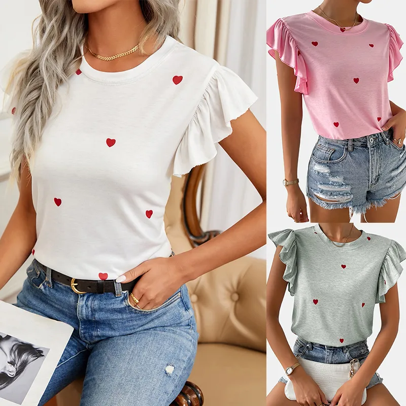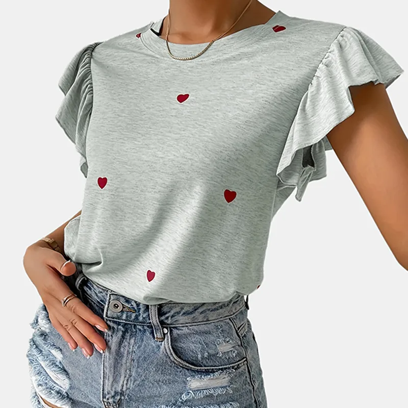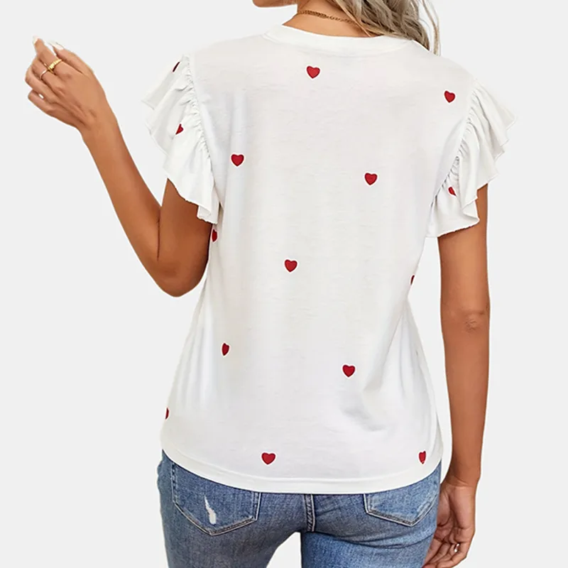 Wholesale women's t-shirt short sleeve t-shirts romantic streetwear heart shape
