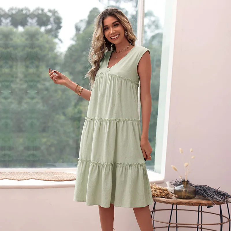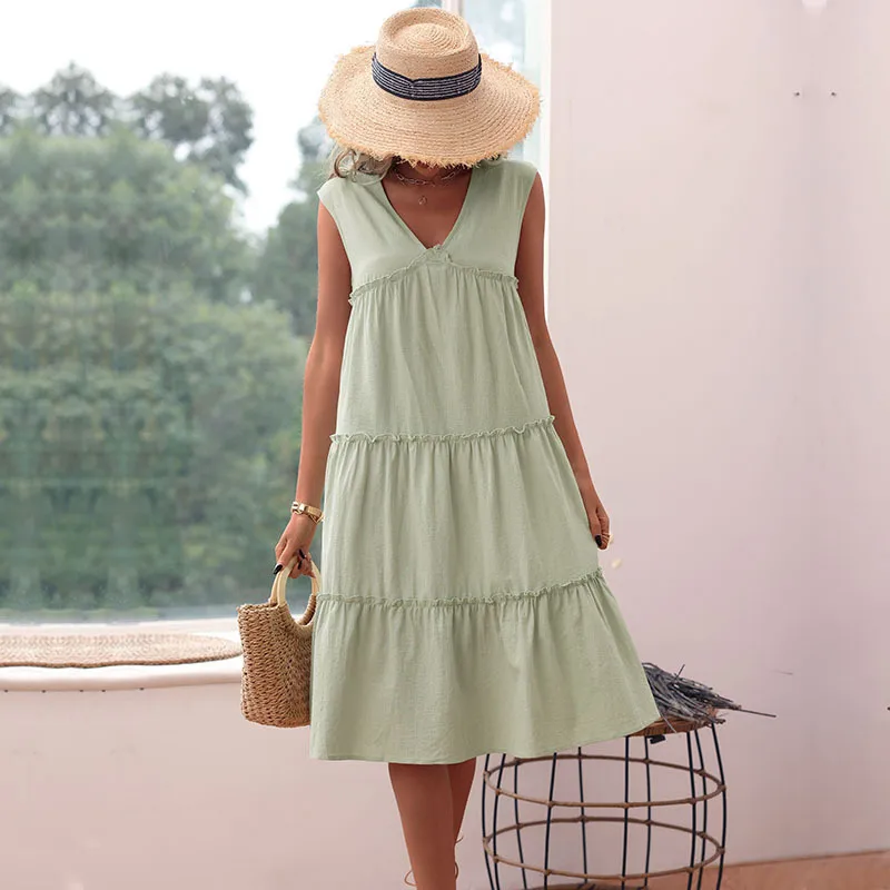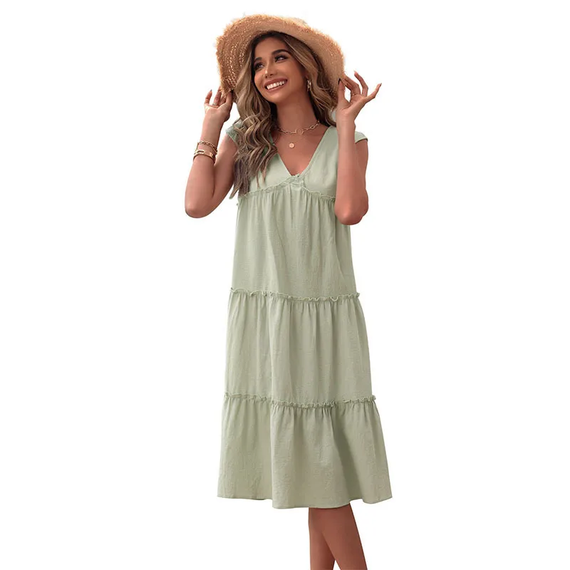 Wholesale Women's Tank Dress Casual Elegant V Neck Long Sleeve Solid Color Midi Dress Daily