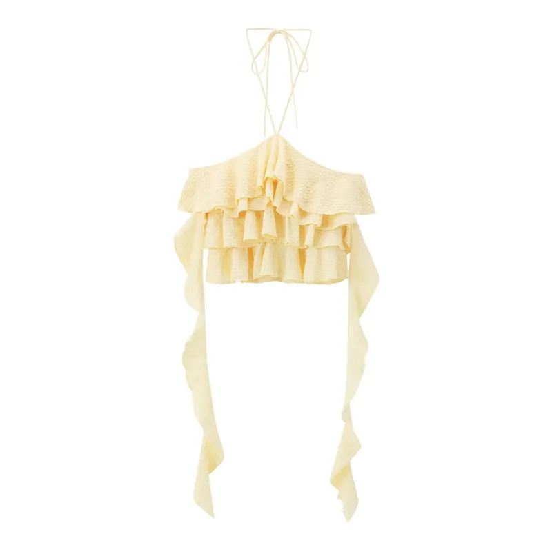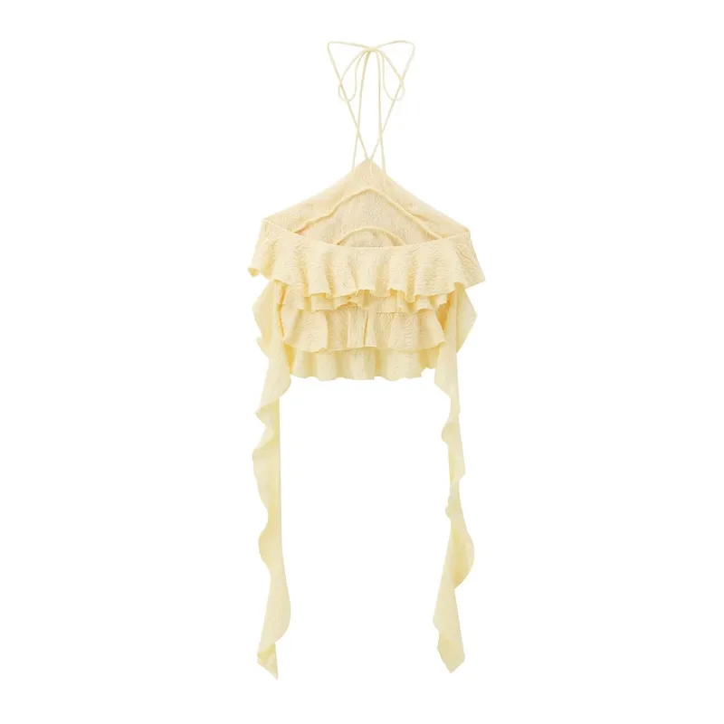Wholesale Women's Tank Tops Ruffles Sexy Solid Color