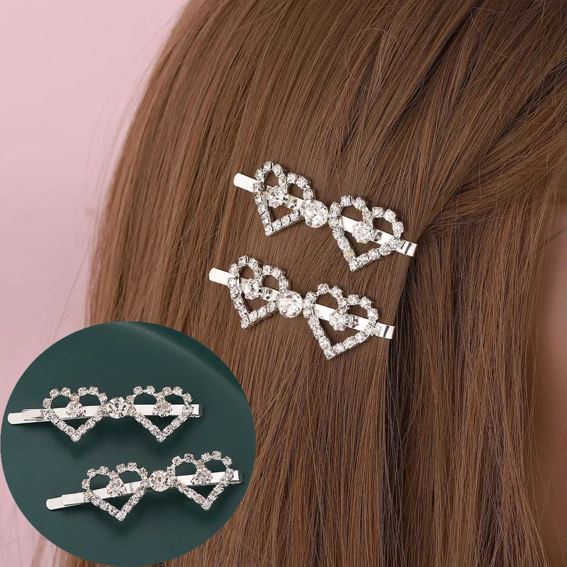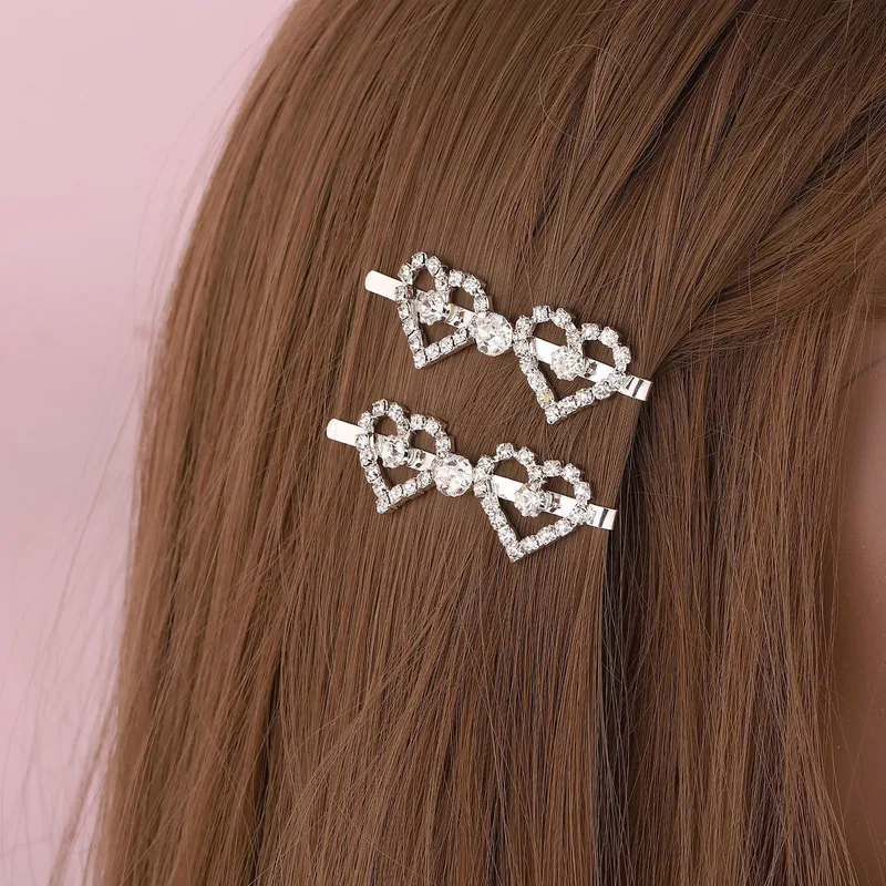 Women's Thai Silver Heart Shape Rhinestone Metal Hair Clip