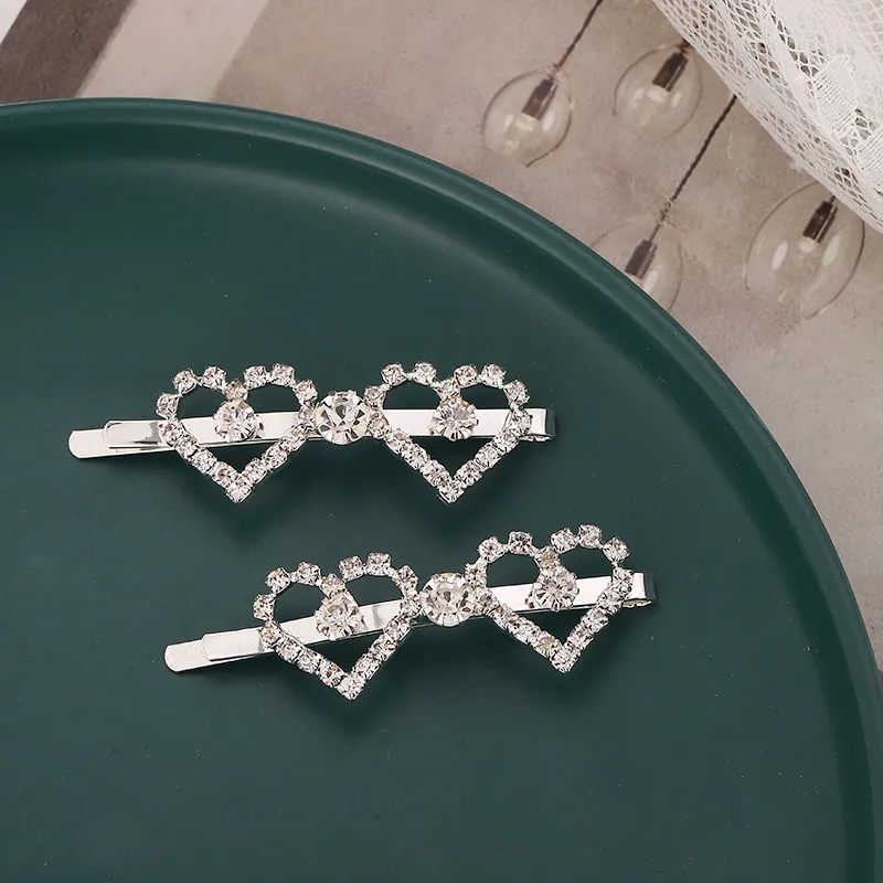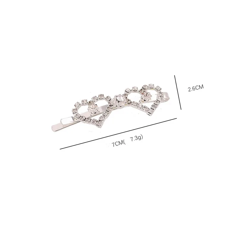 Wholesale women's thai silver heart shape rhinestone metal hair clip