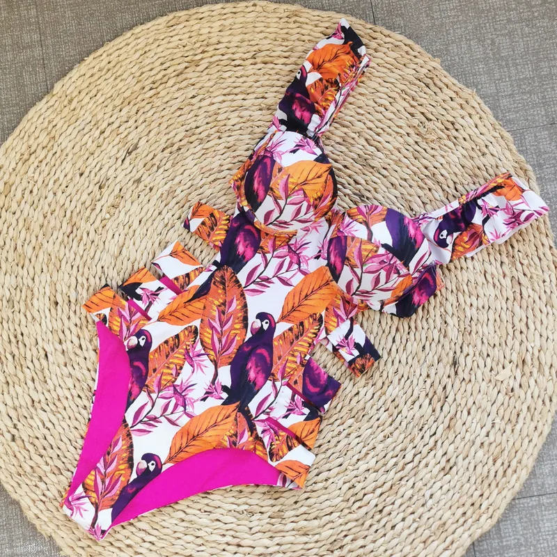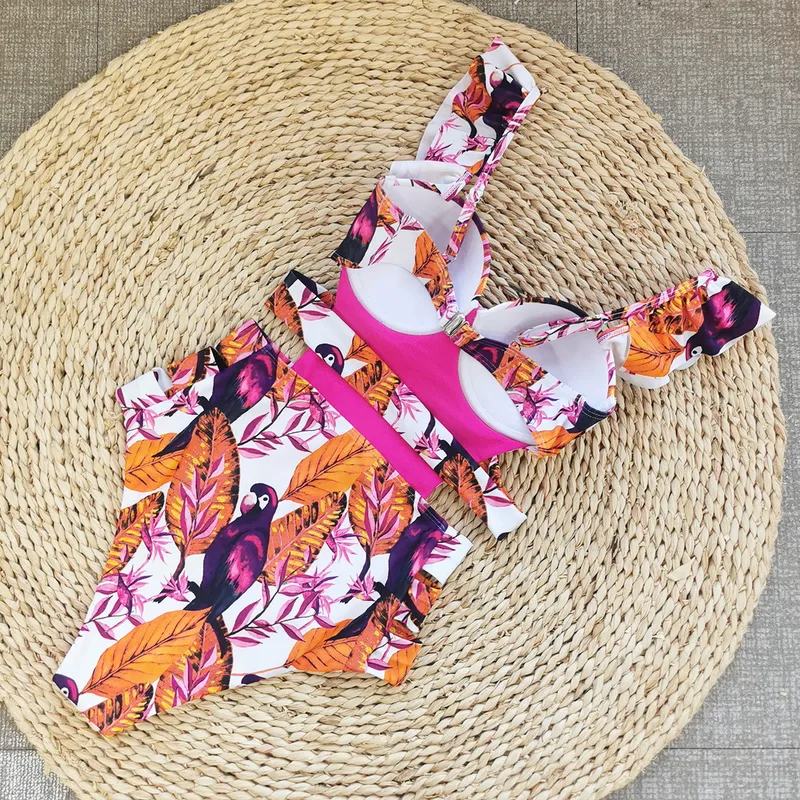 Wholesale Women's Vacation Parrot 1 Piece One Piece Swimwear