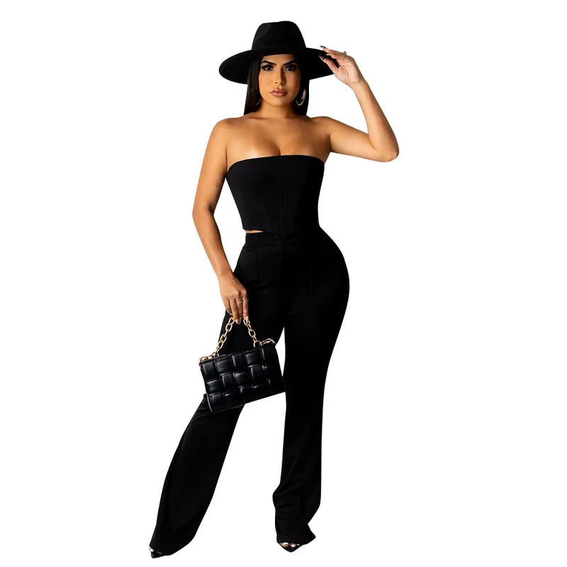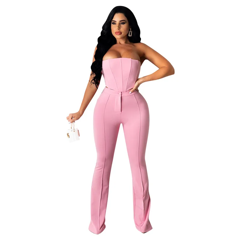 Wholesale women's vacation solid color spandex polyester patchwork pants sets