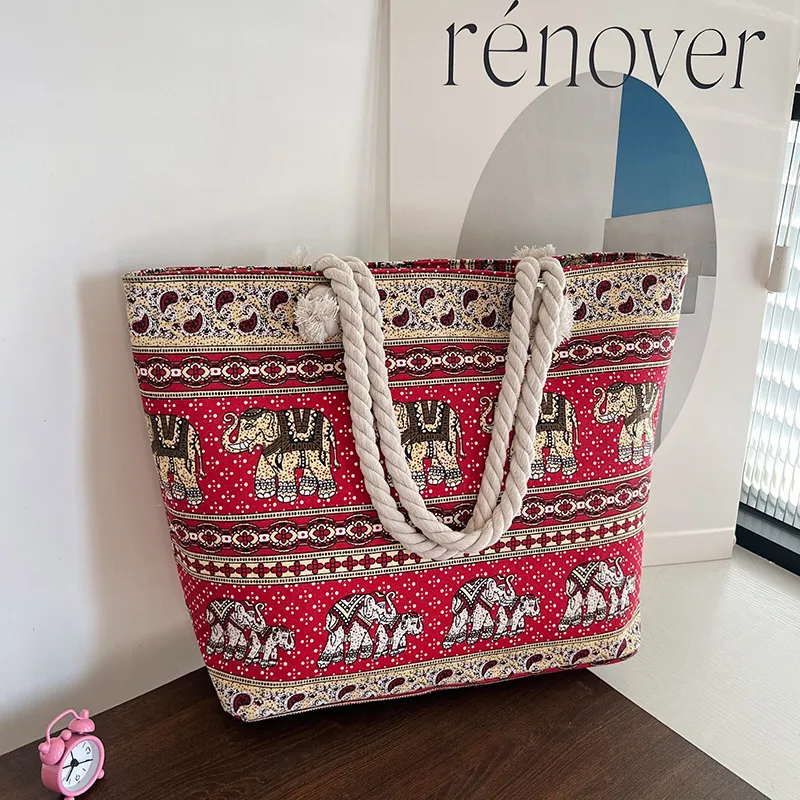 Women's Vintage Style Geometric Canvas Shopping Bags