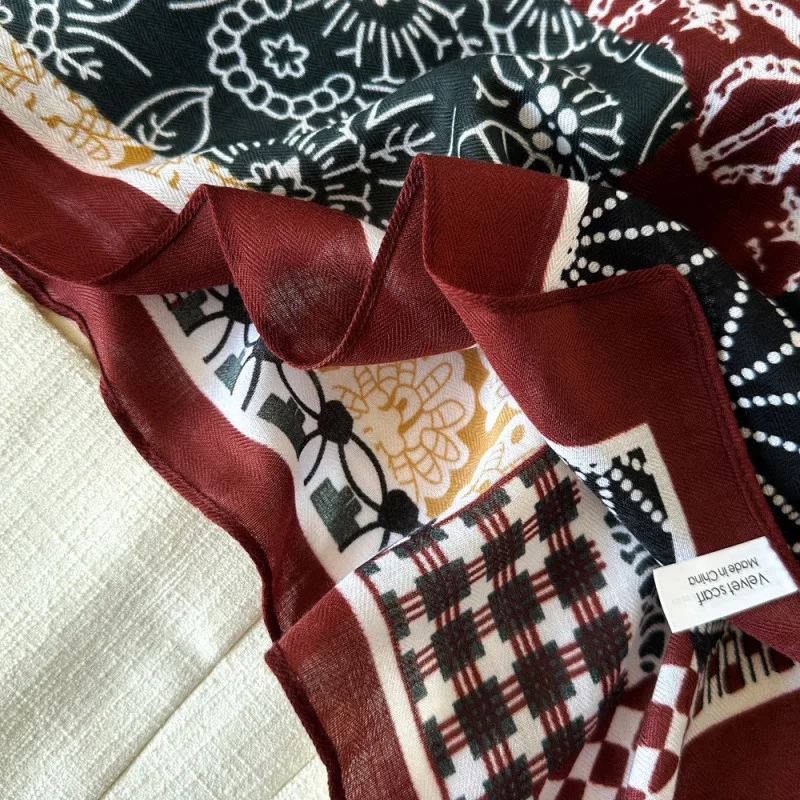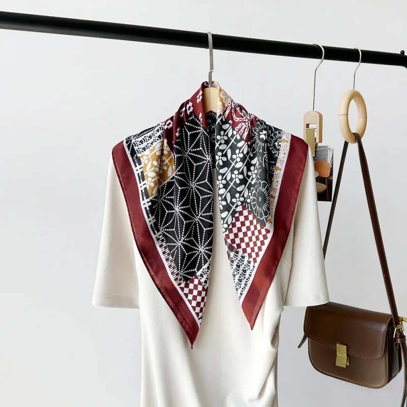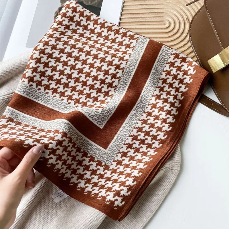 Wholesale Women's Vintage Style Simple Style Geometric Herringbone Pattern Silk Scarf