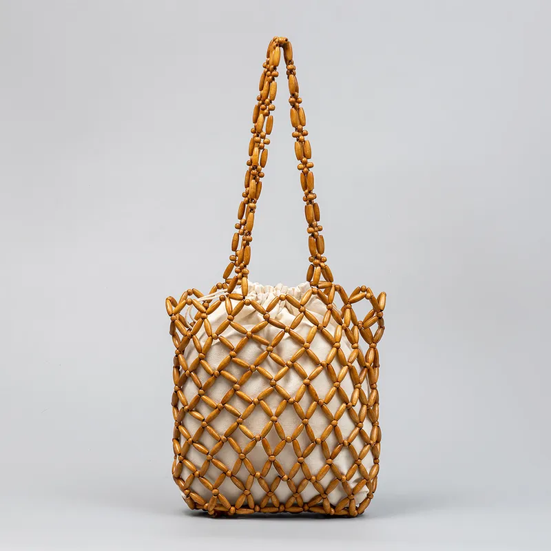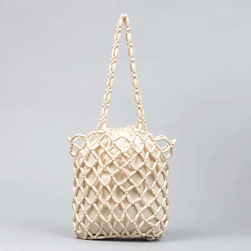 Wholesale Women's Wood Solid Color Basic Beading Weave Square String Shoulder Bag