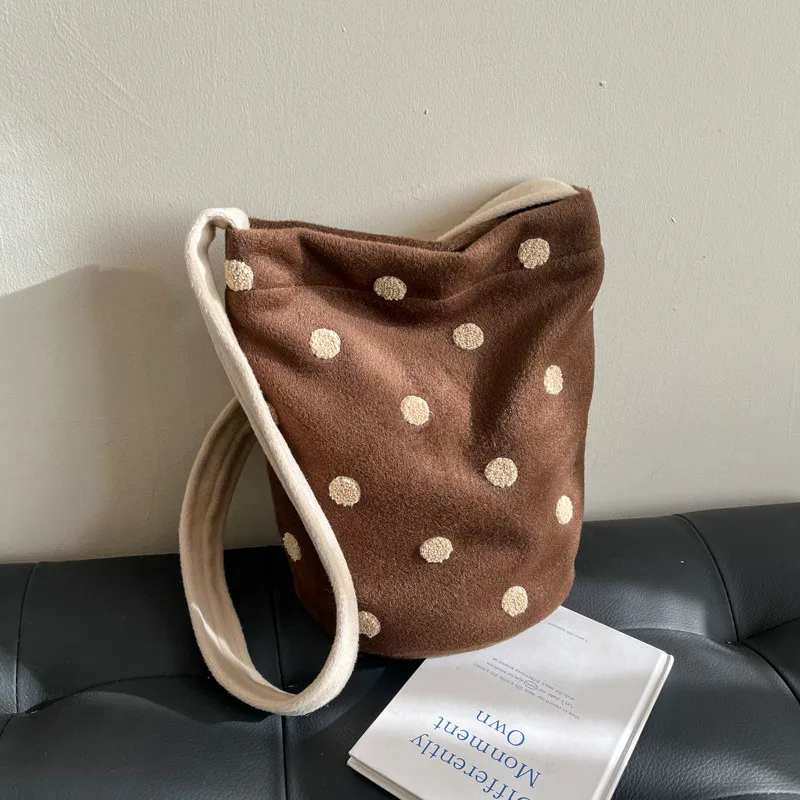 Women's Woolen Polka Dots Cute Bucket Magnetic Buckle Shoulder Bag