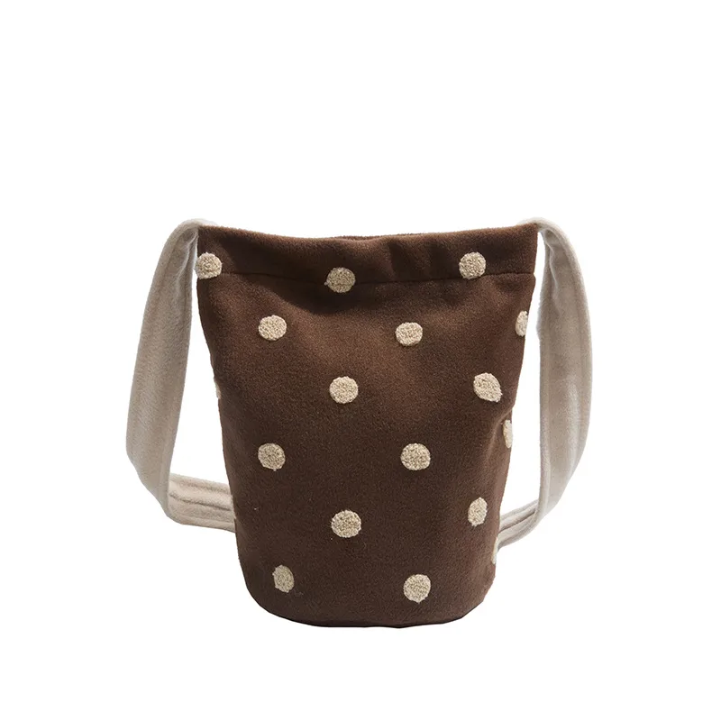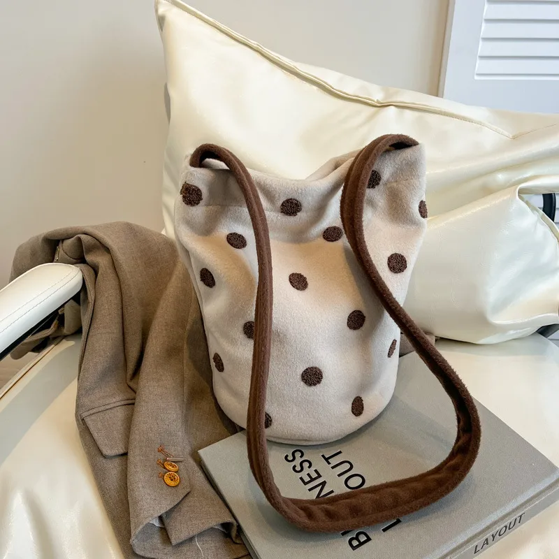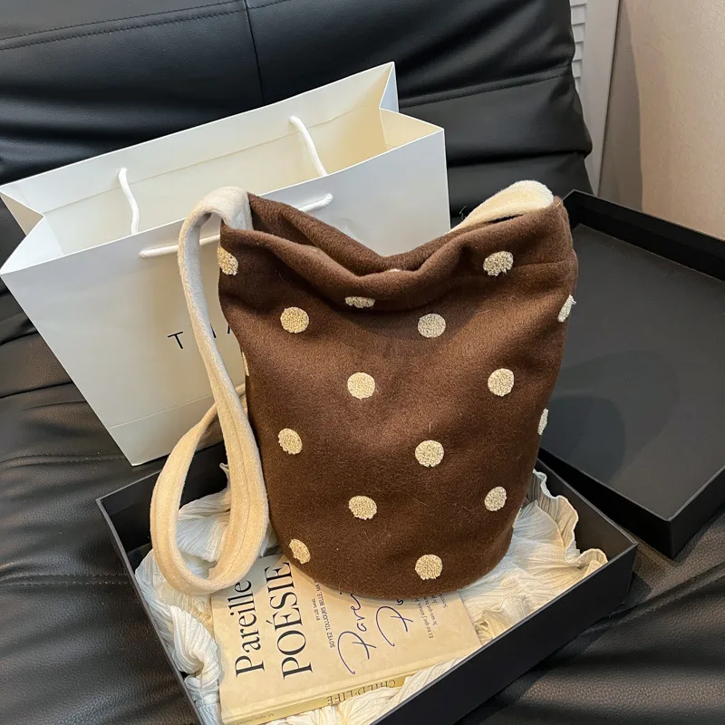 Wholesale Women's woolen Polka Dots Cute Bucket Magnetic Buckle Shoulder Bag