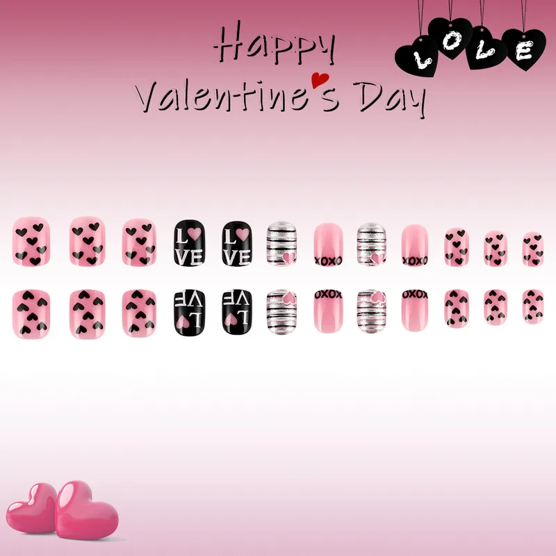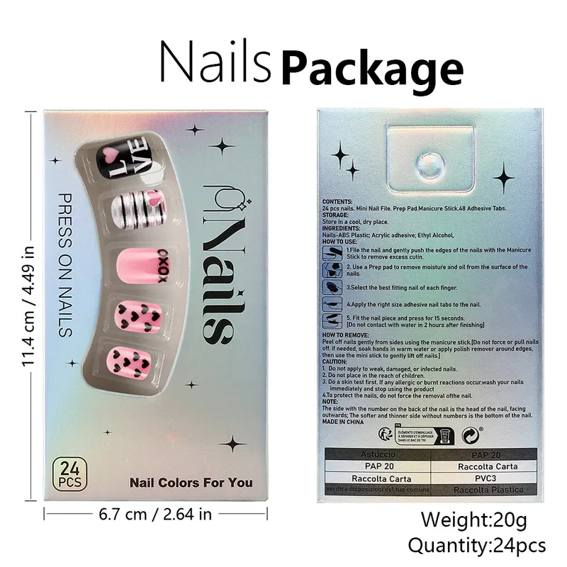 Wholesale XOXO Stripe Heart Shape Plastic press-on nails