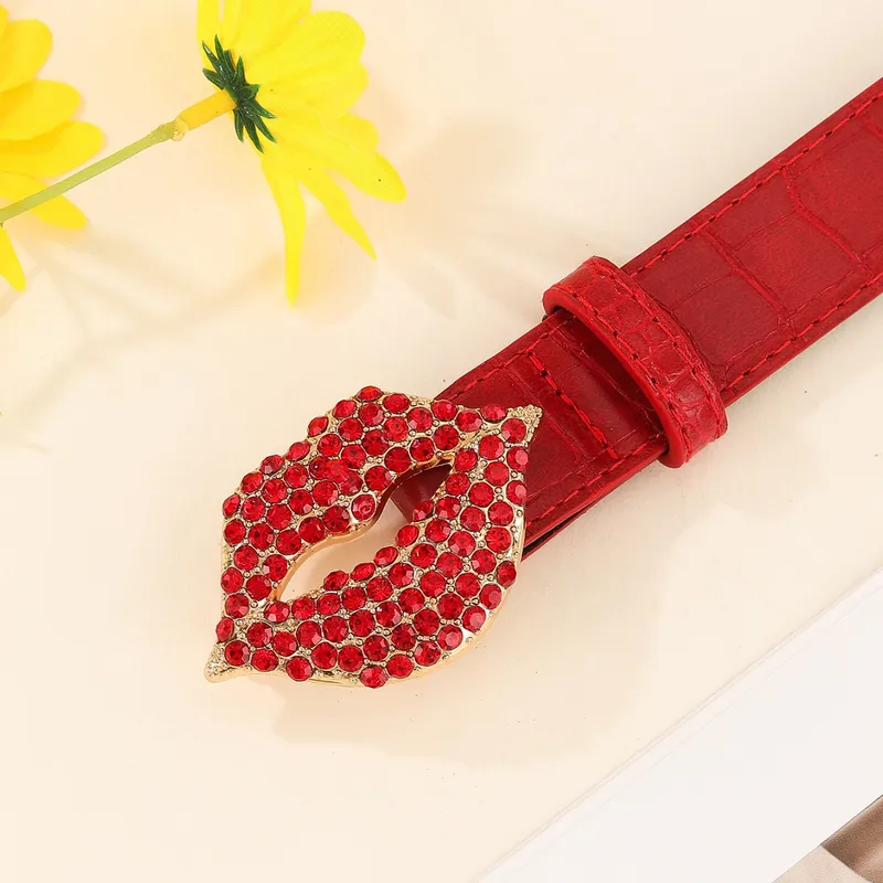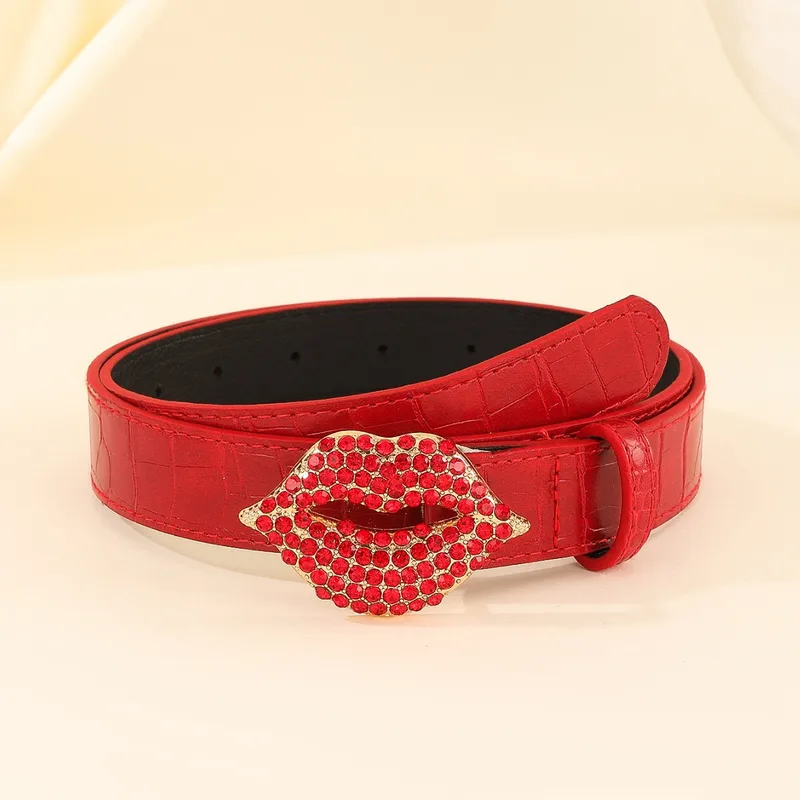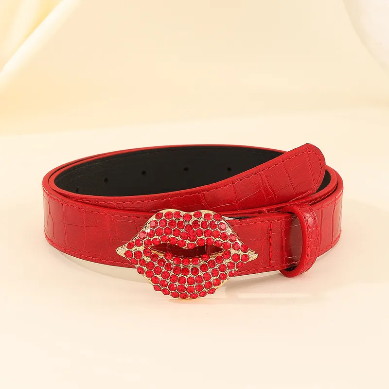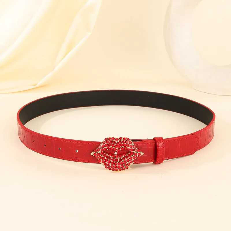Y2K Lips Pu Leather Alloy Inlay Rhinestones Women's Leather Belts