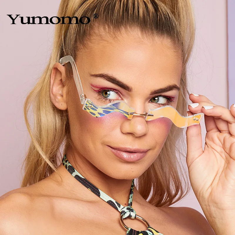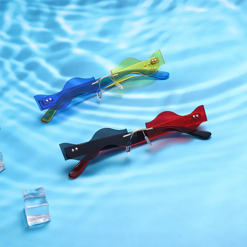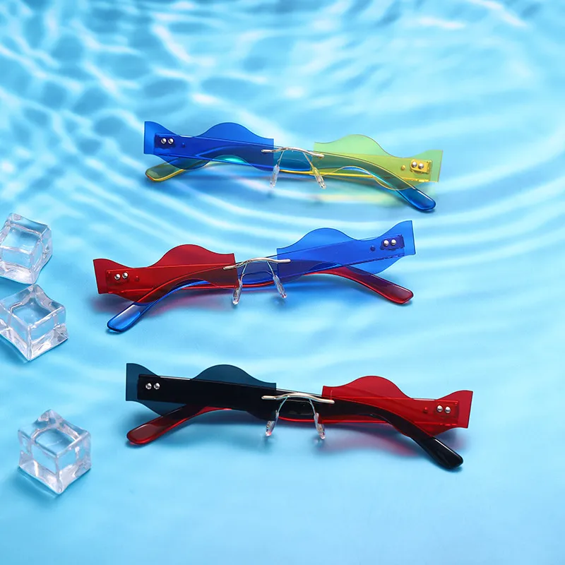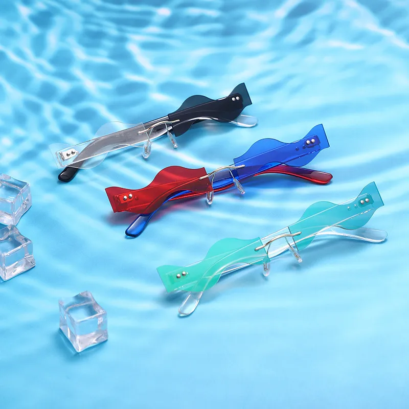 Y2K Vacation Novelty Waves Pc Special-Shaped Mirror Frameless Glasses