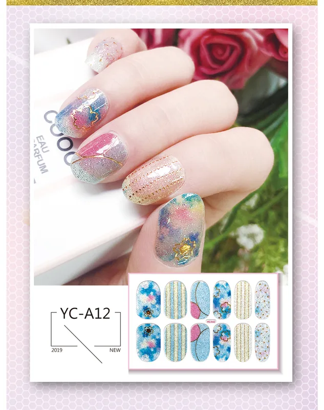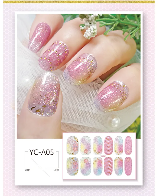 Yc-a01-16 Semi-transparent Gradient Glitter Nail Art Stickers Full Cover Star Sign Nail Decals Crystal Hot Stamping Art